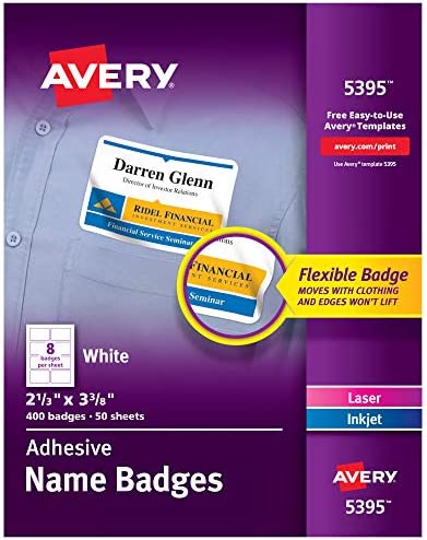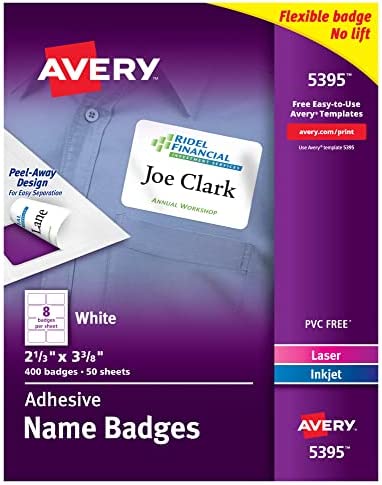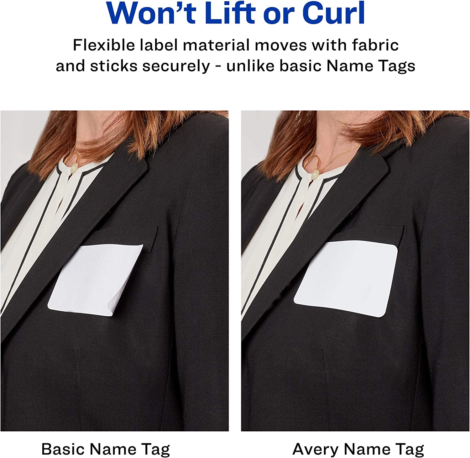 Avery Flexible Name Tag Stickers, White Rectangle Labels, 400 Removable Name Badges, 2-1/3" x 3-3/8" (5395)