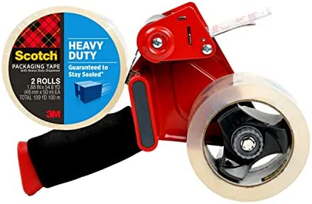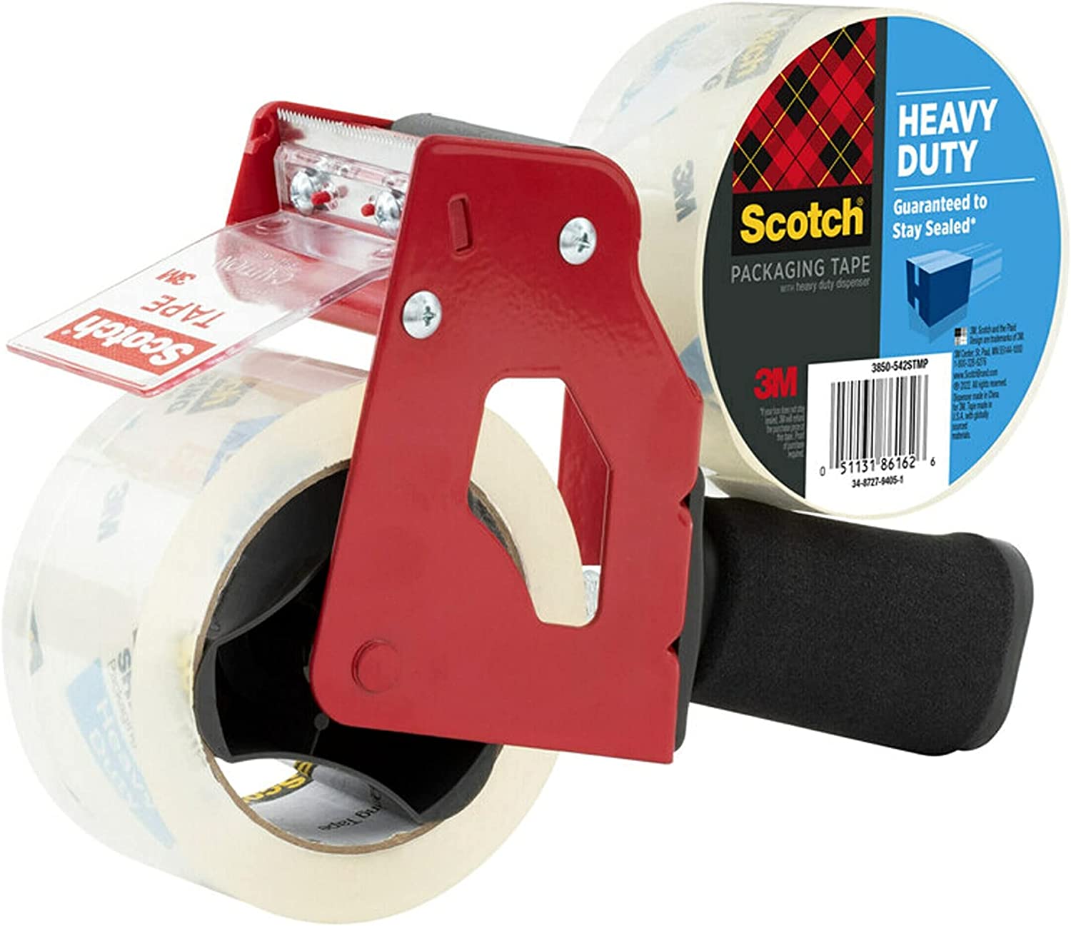 Scotch Heavy Duty Packaging Tape, 1.88" x 54.6 yd, Designed for Packing, Shipping and Mailing, Strong Seal on All Box Types, 3" Core, Clear, 2 Rolls w/Dispenser (3850-2ST)