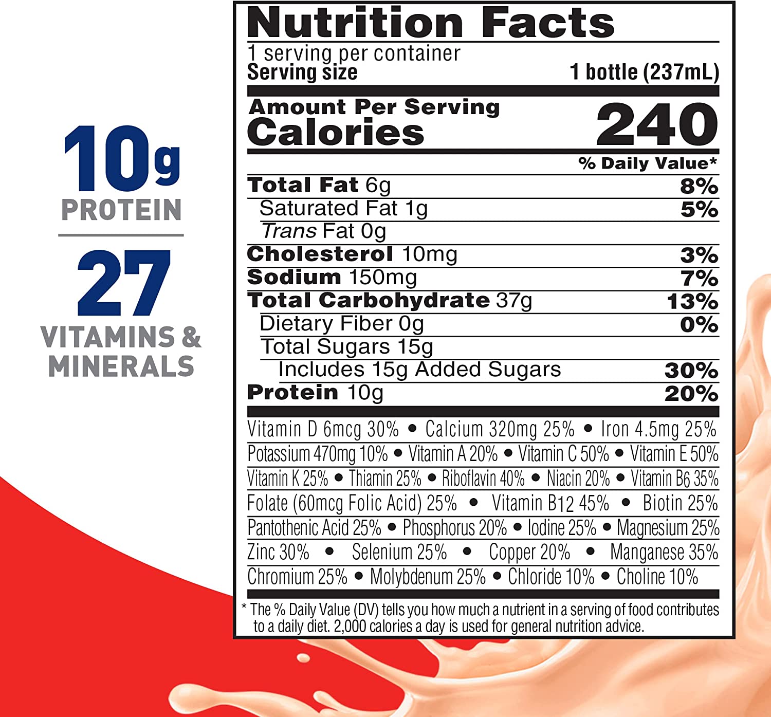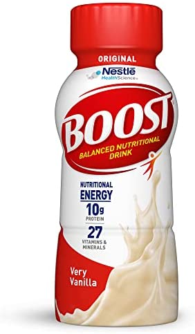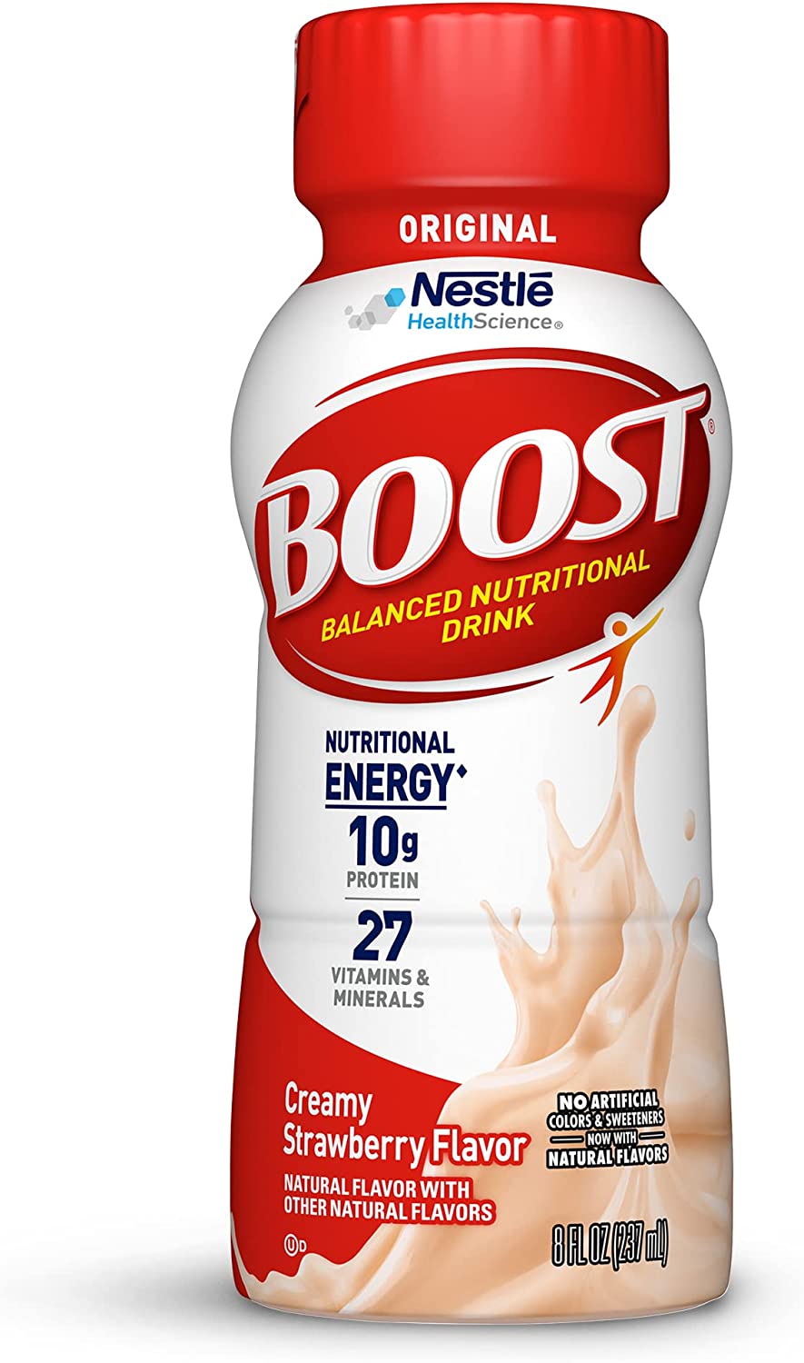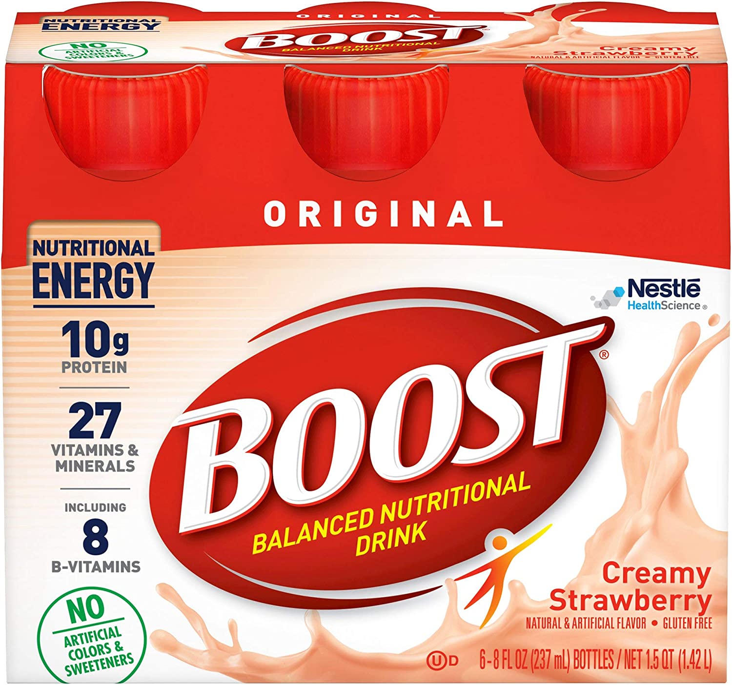 • BOOST Original: This drink is designed to provide nutritional energy with 240 nutrient-rich calories and B-vitamins to help convert food to energy, plus 10g protein and 27 vitamins and minerals for balanced nutrition