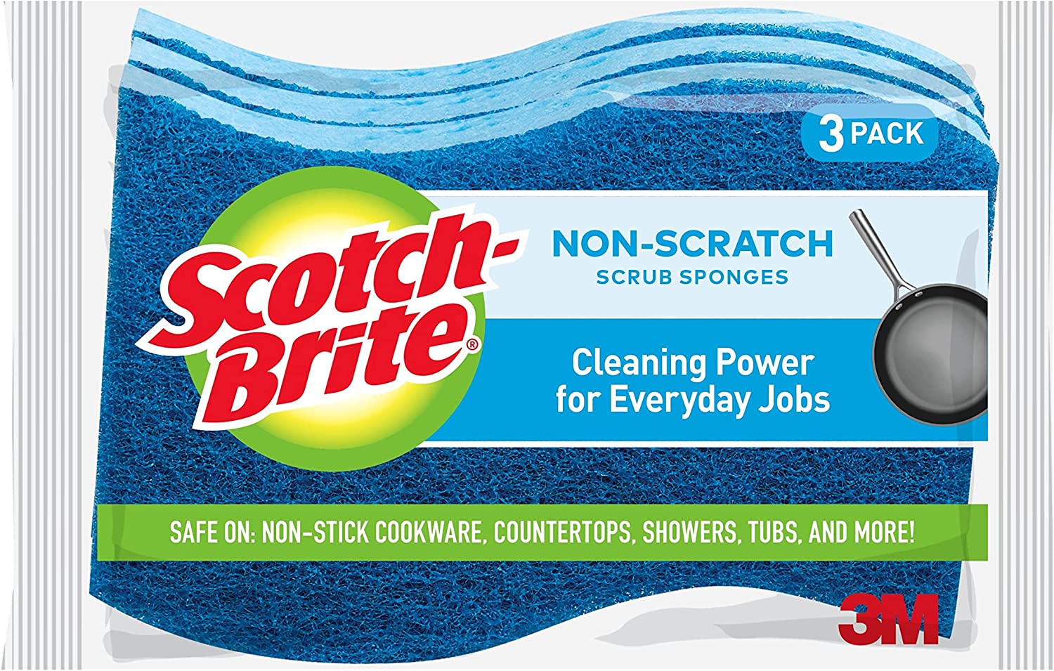 Scrub away everyday messes from non-stick cookware, countertops and more with Scotch-Brite Non-Scratch Scrub Sponges. With scrubbing fibers made from 100% recycled content, these long-lasting scrub sponges tackle everyday cleaning jobs around the home without scratching.