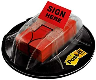 Post-it Message Flags, "Sign Here", 200/Desk Grip Dispenser, 1 Dispenser/Pack, 1 in Wide, Red (680-HVSHR)