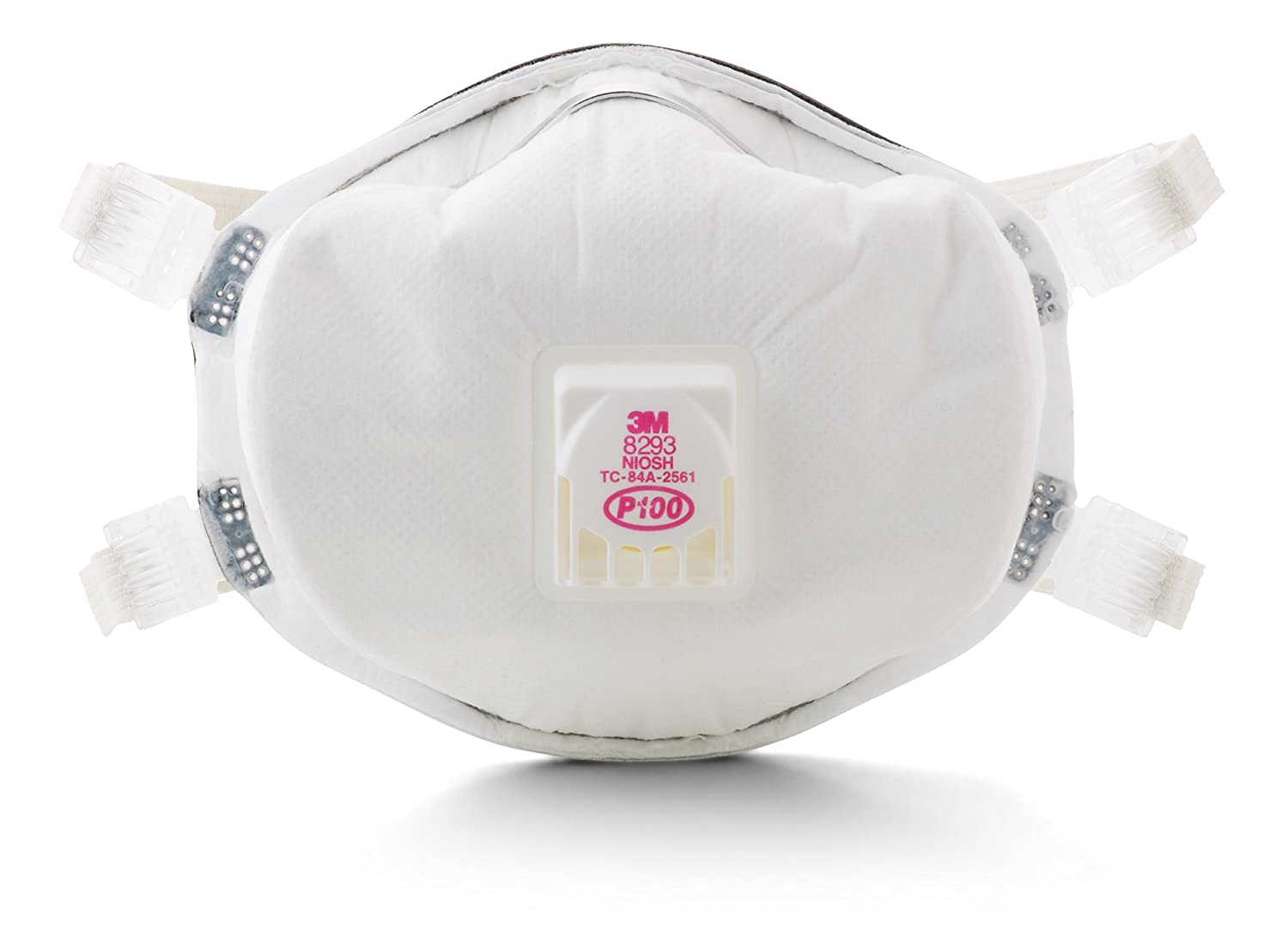 3M Disposable Particulate Cup Respirator 8293 P100 with Cool Flow Exhalation Valve,Adjustable Buckle Straps and Noseclip,White
