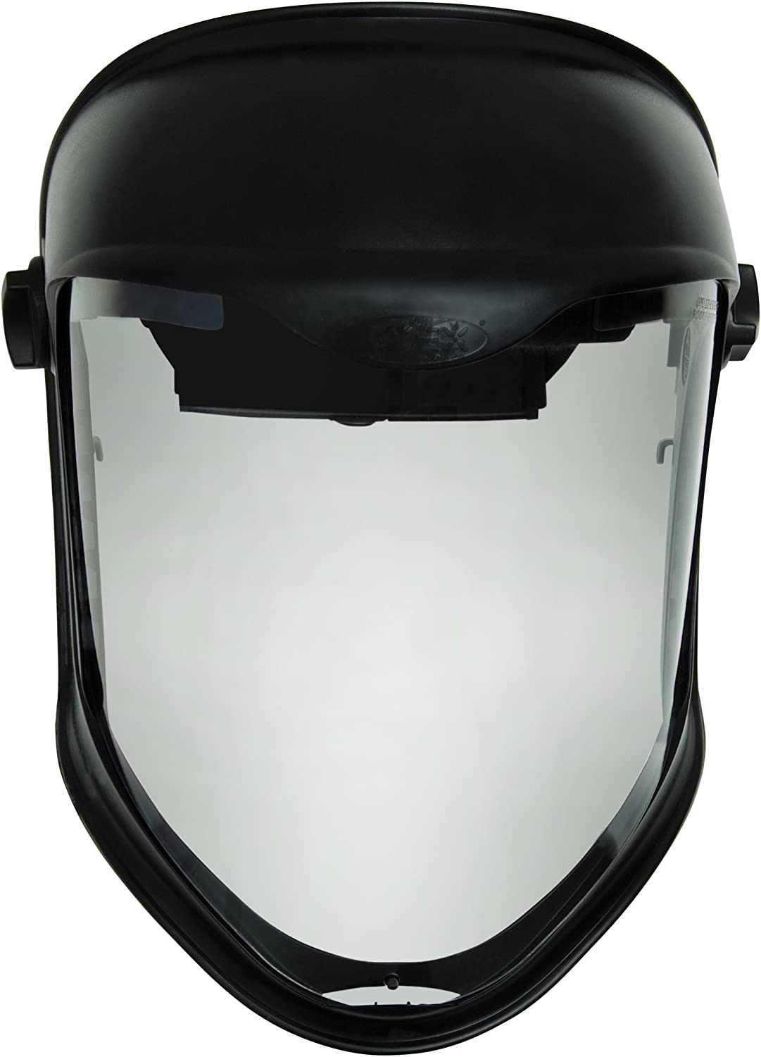 | Special Features | Excellent optics and increased visibility. . Easily replaceable visor with dual position choices . . . Secure visor attachment . . . Lightweight and balanced, ergonomic design for extended use . . . Comfortable cell foam on back of headgear . . . Breathable, removable, washable headband . . . Black matte finish . . . Comfortably worn with most goggles and respirators ., Passes ANSI Z87+ and CSA Z94.3 standards ., Faceshield offers secondary protection and must be worn with spectacles or goggles . . . |
