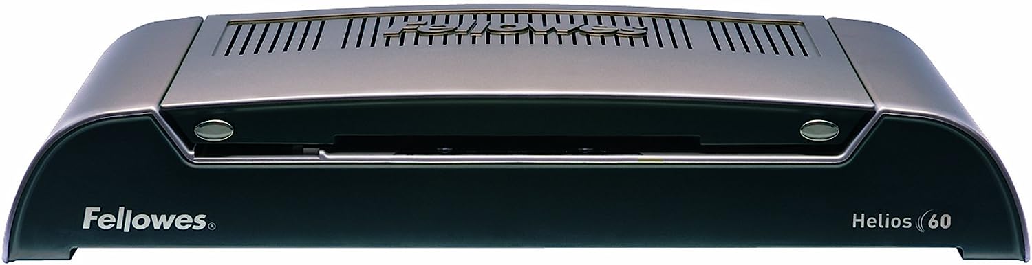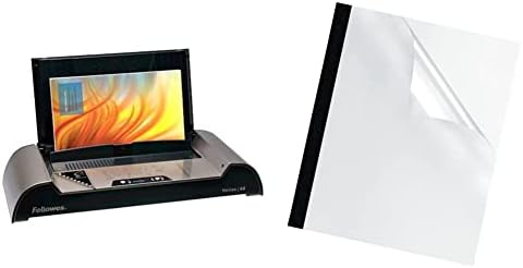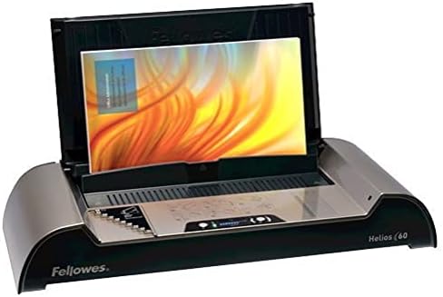 Ideal for frequent use in large offices, the Fellowes Helios 60 Thermal Binding Machine features an auto document thickness detector with auto-binding cycle that selects thermal binding settings for the user. Binds documents up to 600 sheets in a single step. 1-3 minute thermal binding cycle with 4-minute heat-up time. Heat Shield safety barrier prevents accidental contact with the heating plate. Visual indicators signal when machine is ready for thermal binding and heat cycle begins once document is loaded. Ready-beep sounds when thermal binding cycle is complete. Internal clamps hold documents in place during thermal binding process. Auto shut-off safety feature prevents overheating. Stylish design folds flat for storage. For use with thermal binding covers only.