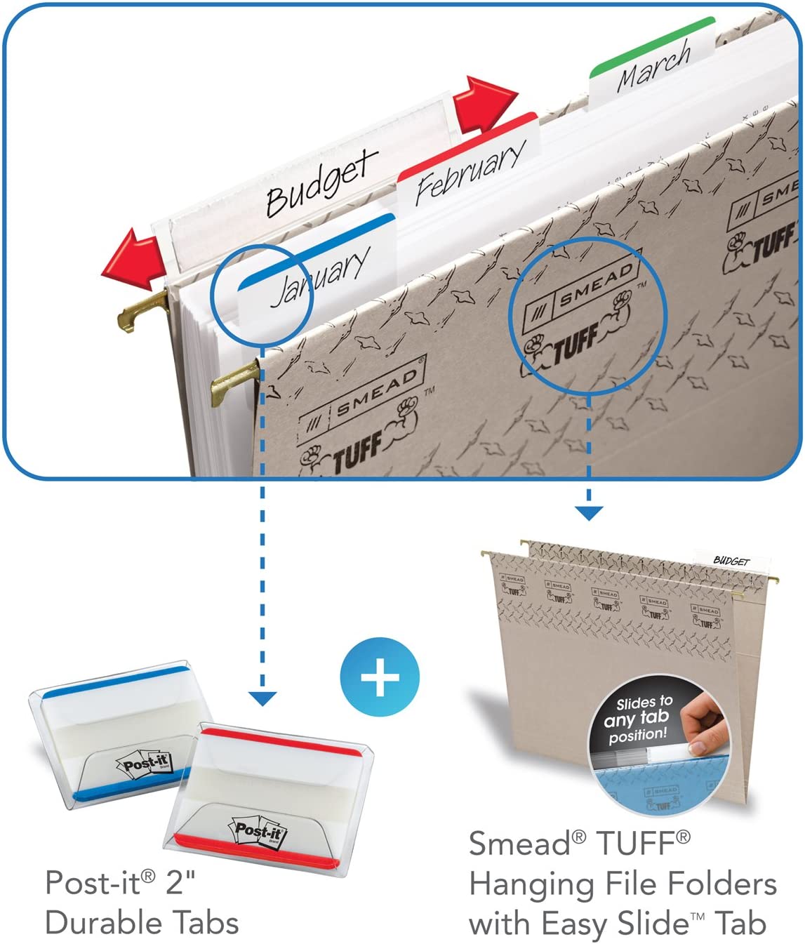 • White tabs give you flexibility to organize by color