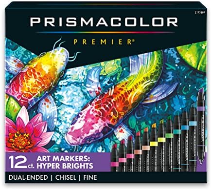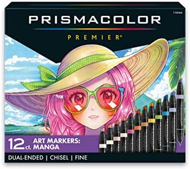 Lay down precisely the marks you want to make in 12 Manga-perfect colors with Prismacolor Premier Double-Ended Art Markers. The dual-ended design features a fine tip on one end and a large chisel on the other. This allows you to quickly flip between precision and coverage. The ink is richly saturated and designed for an effortlessly smooth flow while a single source of ink ensures color consistency at both ends. And the advanced, alcohol-based pigment resists fading so your creations will endure.