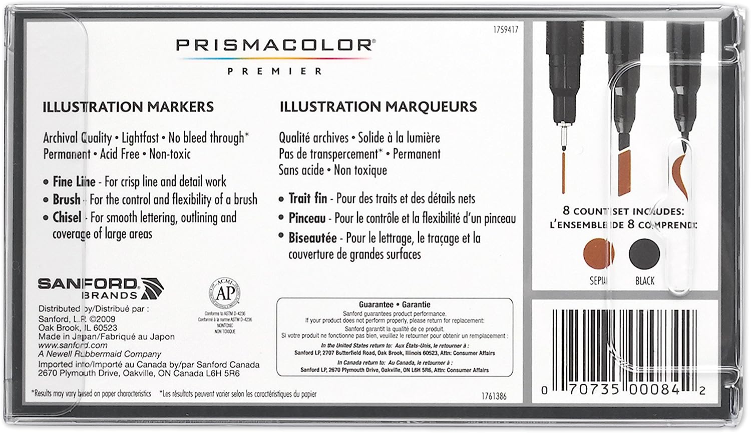 • Richly pigmented black and sepia ink is acid free, lightfast, permanent, water resistant, smear resistant when dry and doesn’t bleed through paper