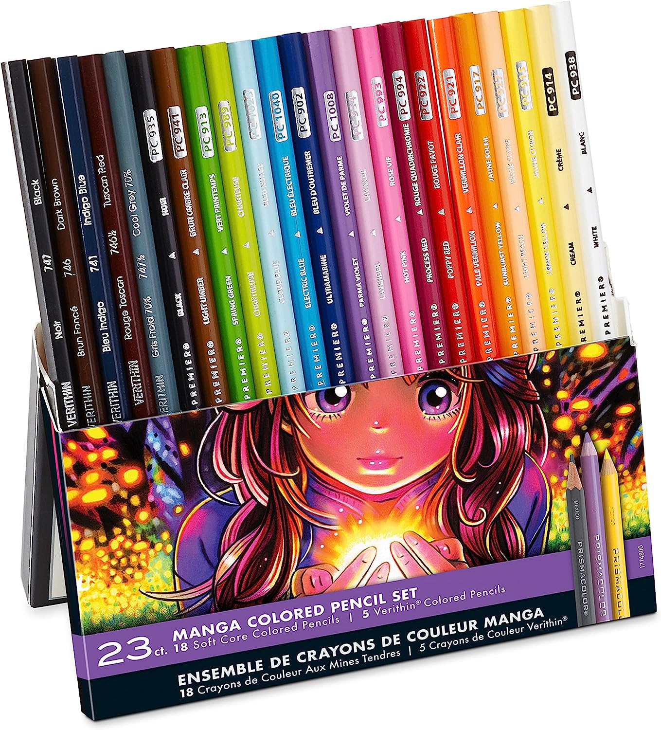 • Soft Core and Verithin pencils in colors picked to help you draw Manga and comics