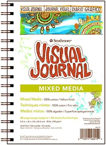 Strathmore 500 Series Visual Mixed Media Journal, 9"x12" Vellum, Wire Bound, 34 Sheets Product description (optional) : Strathmore-Visual Journal: Mixed Media. This package contains one 12x9 inch spiral-bound art pad. It is filled with sixty-eight pages of 90-pound paper with a vellum finish. It is great for wet and dry media including watercolor, acrylic, pen and ink, pencil, crayon, charcoal, marker, and collage. Acid free. Made in USA. This item is manufactured in United States.