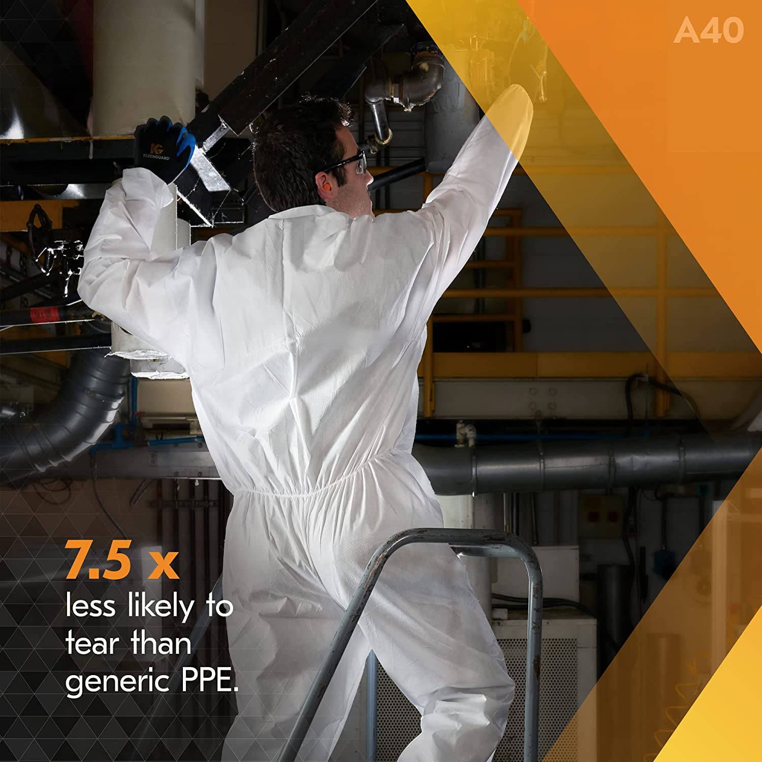 KleenGuard Coveralls A 40 Liquid and Particle Protection Apparel (44303), White, Large, 25 Garments / Case