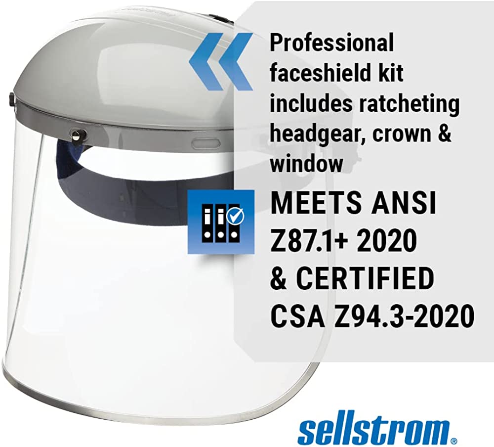 Sellstrom Advantage Series Face Shield - Clear Window with Aluminum Binding - Comfortable Ratcheting Headgear