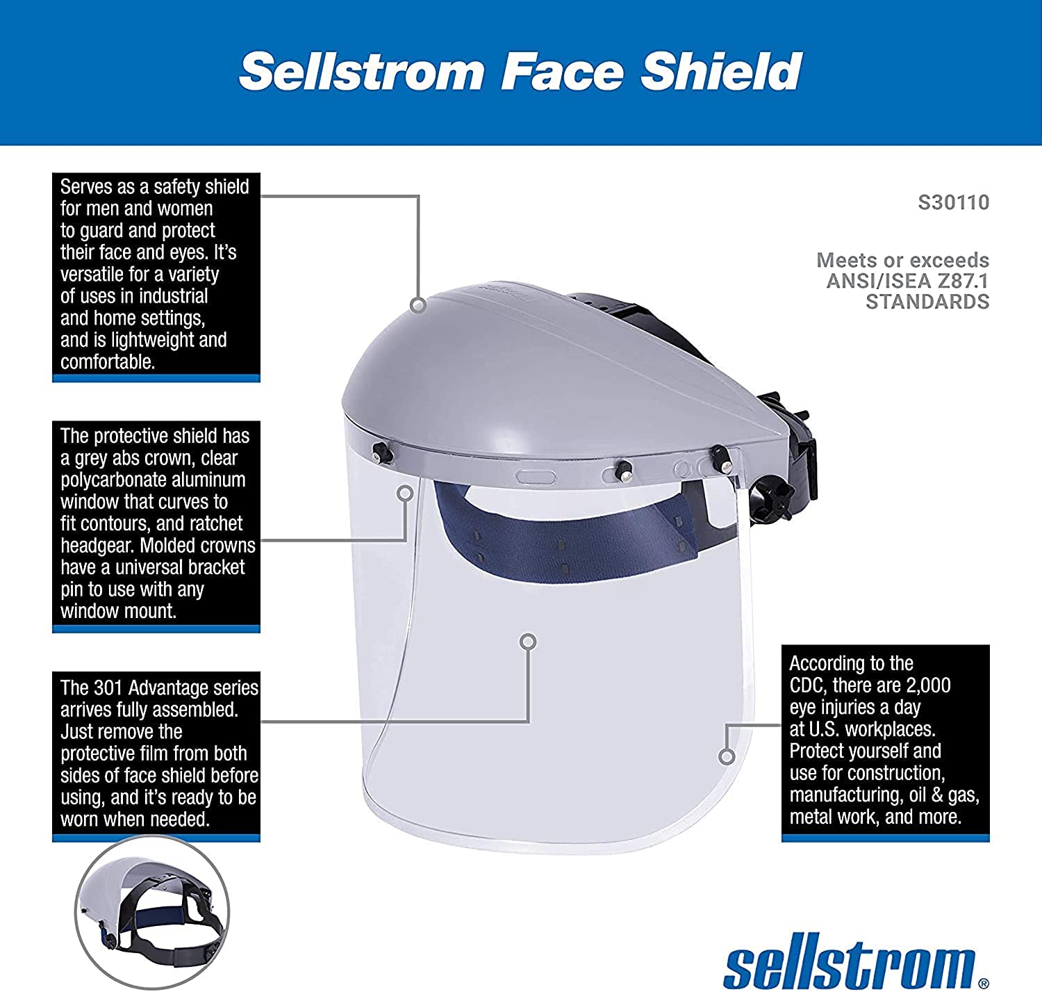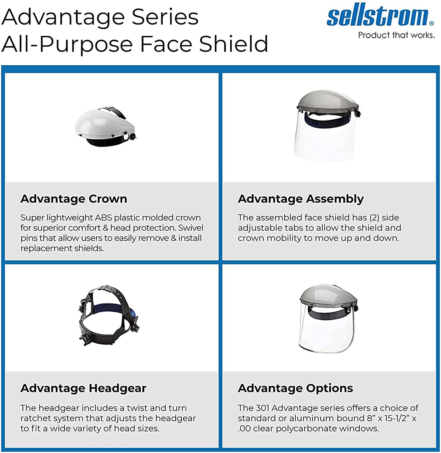• NO ASSEMBLY NEEDED: The 301 Advantage series arrives fully assembled. Just remove the protective film from both sides of face shield before using