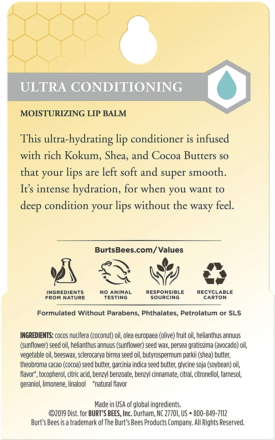 • Moisturizing LIP care: Renew your lips with more butter and less wax in this ultra conditioning Burt's Bees formula that locks in moisture to comfort dry lips