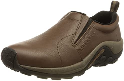 Simple, comfy and casual - the Jungle slip-on from Merrell is a perfect fit. The smooth leather upper keeps things presentable and the elasticized panels deliver a flexible, snug fit and feel. The Jungle Runner sticky rubber outsole has excellent grip across changing terrain while the Air Cushion midsole allows long-wearing comfort.