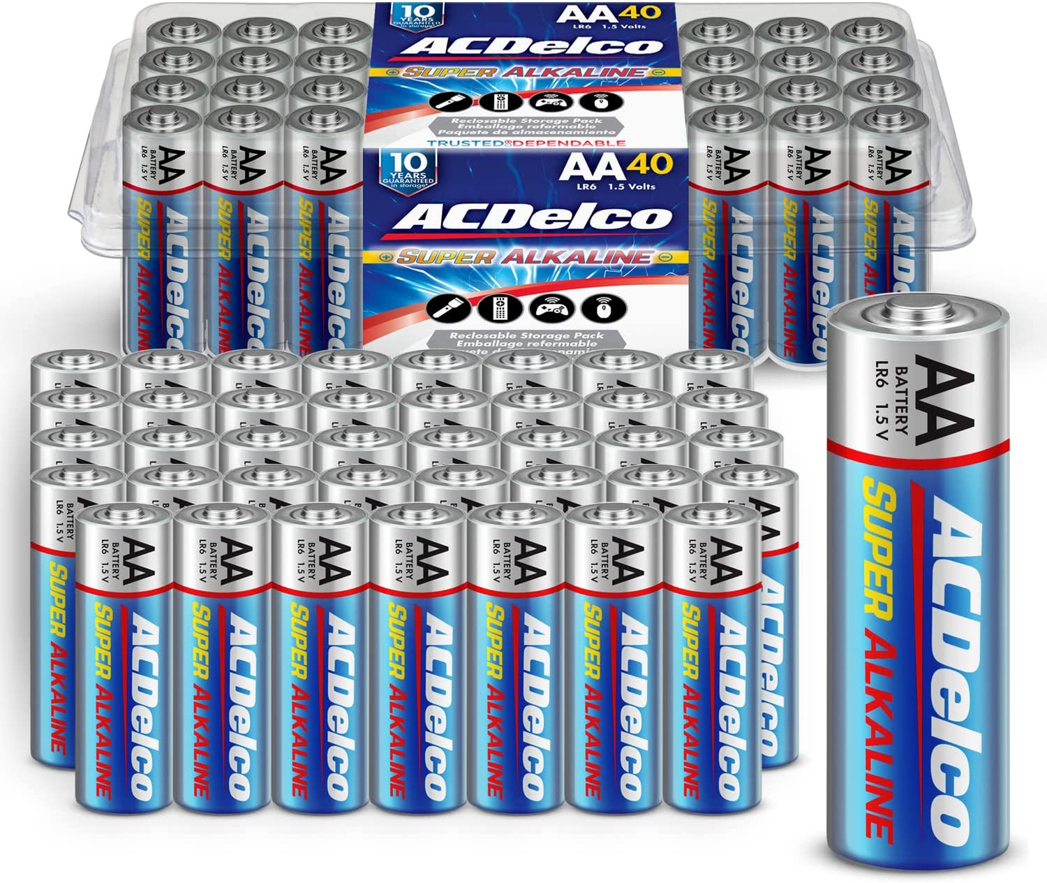 ACDelco 40-Count AA Batteries, Maximum Power Super Alkaline Battery, 10-Year Shelf Life, Recloseable Packaging, Blue