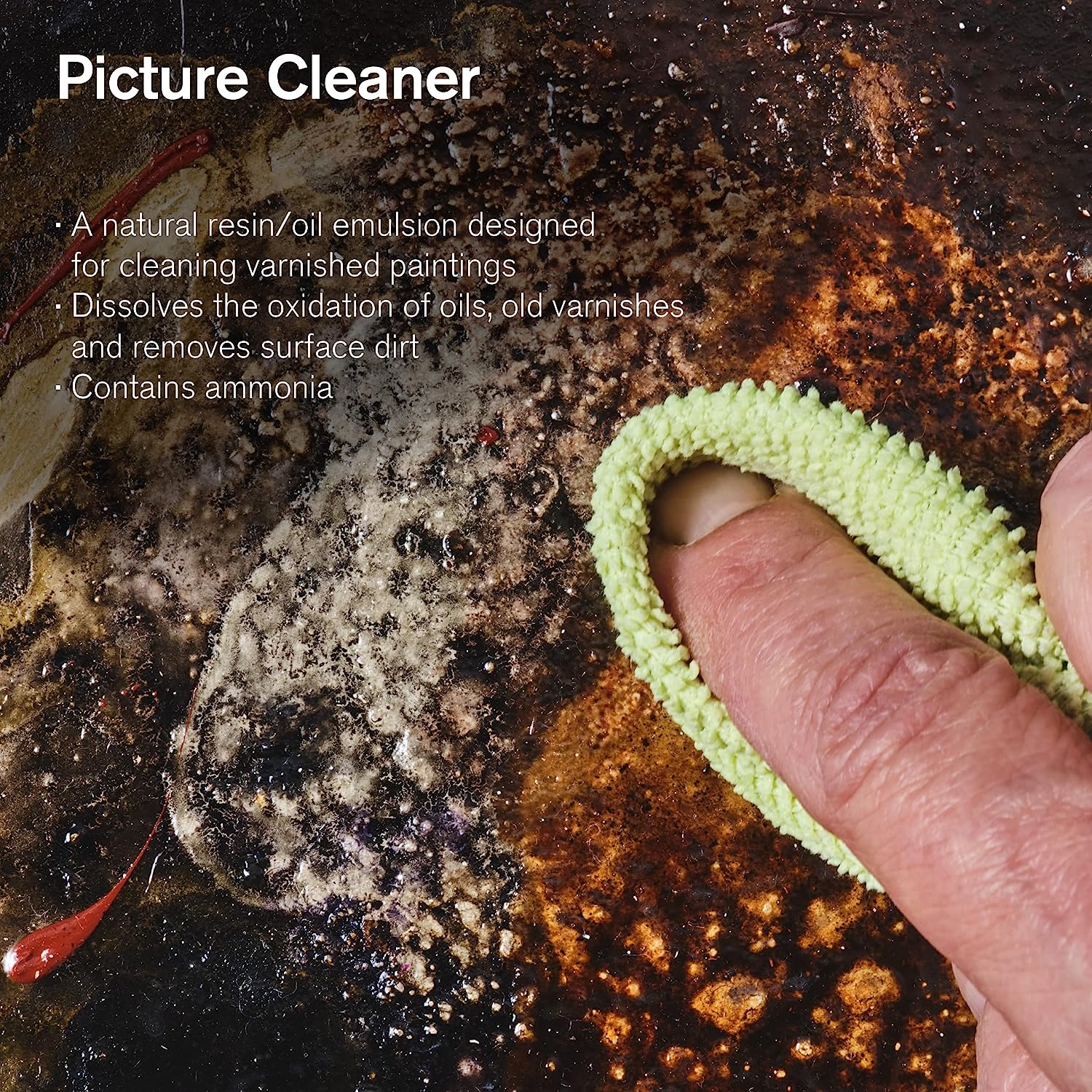 Winsor & Newton Artists' Picture Cleaner is a natural resin/oil emulsion containing ammonia designed for cleaning varnished paintings. It works by dissolving linseed oil oxidation and will remove surface dirt and the products of oxidation in the old varnish. Note that a picture that needs to have old varnish removed should be entrusted to a competent picture restorer. Unvarnished paintings may also be treated with Artists' Picture Cleaner but great care is necessary and the process should be stopped immediately if any color appears to be coming off the painting. Shake before and during use. Clean small areas with cotton wool pads. When cleaning is complete remove any remaining cleaner with distilled turpentine. Batch colour and settlement may vary.