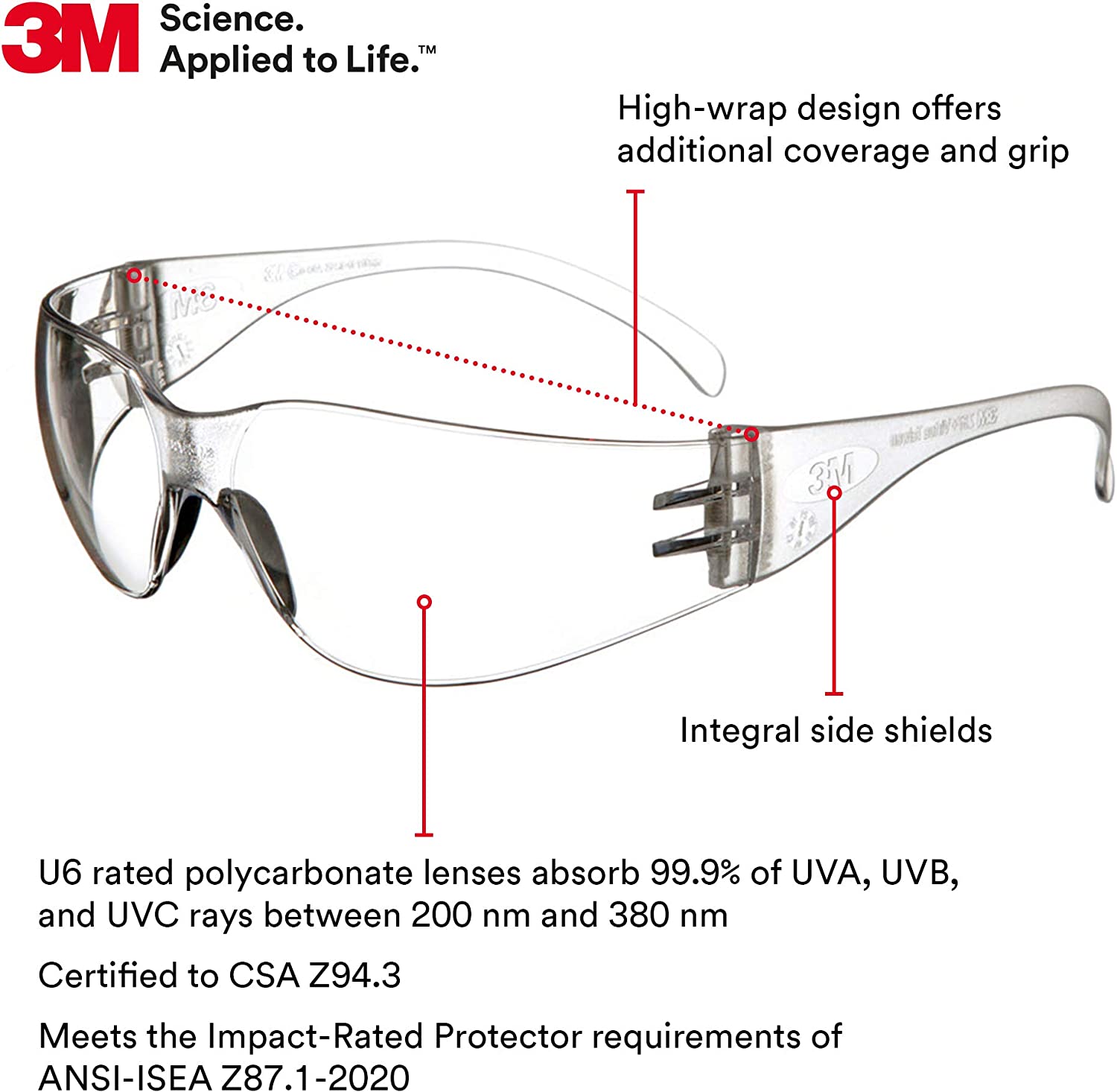 WRAP AROUND DESIGN provides extended eye protection and unobstructed viewing.