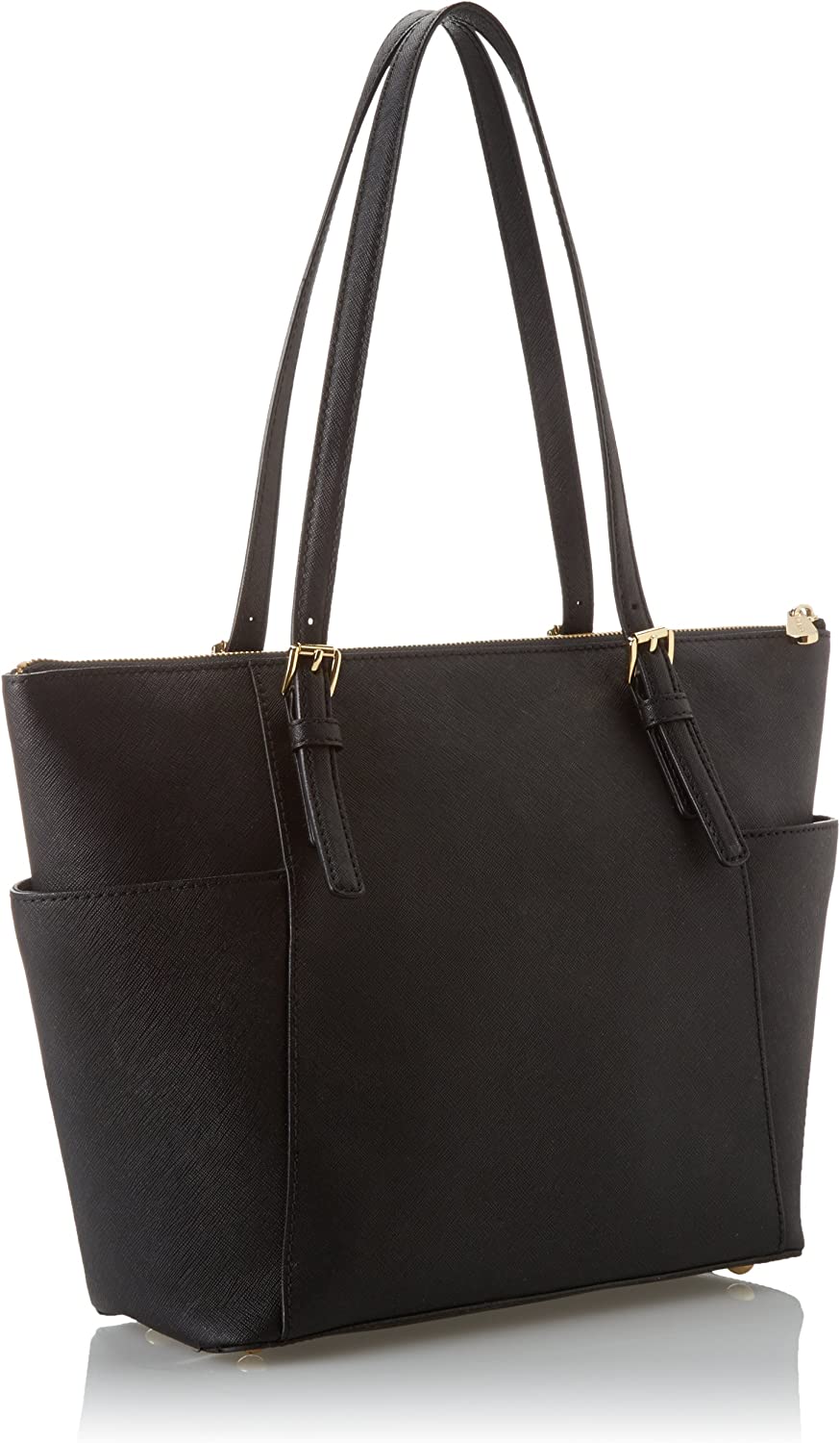 Gold- or silver-tone hardware; 2 side slip pockets