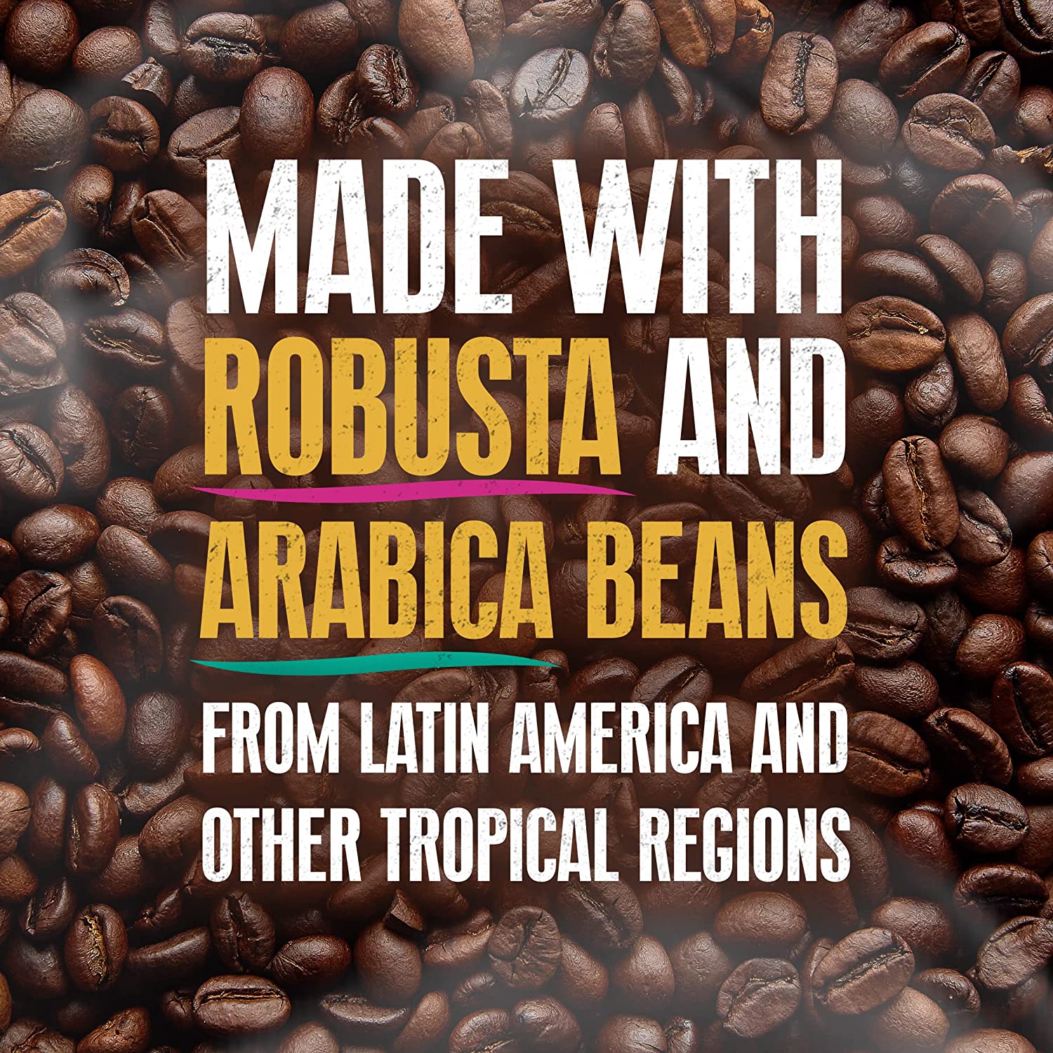 100% PURE COFFEE: Made with Robusta and Arabica beans