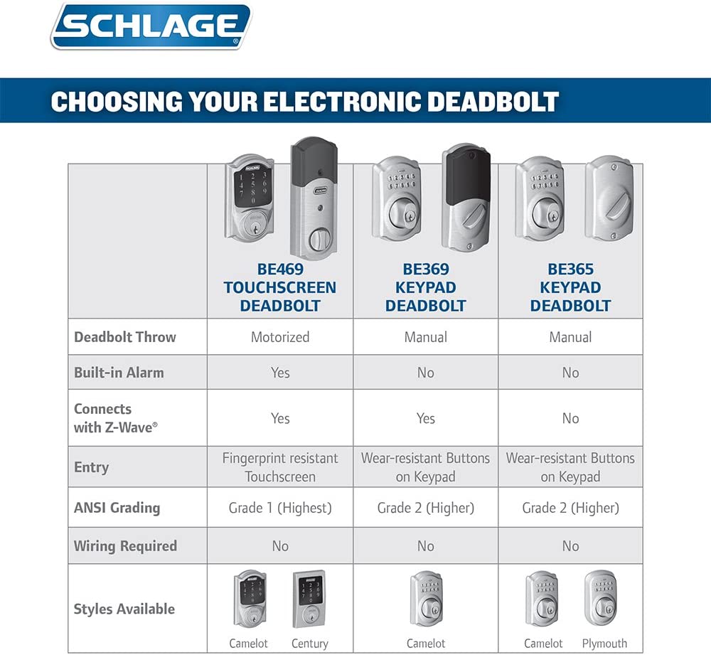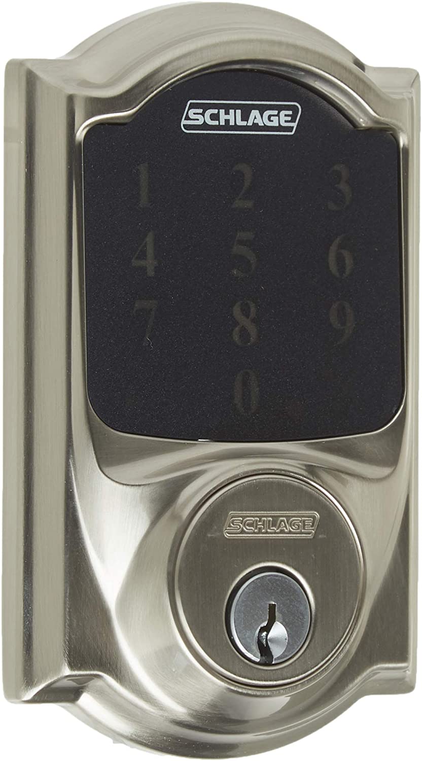 SCHLAGE Z-Wave Connect Camelot Touchscreen Deadbolt with Built-In Alarm, Satin Nickel, BE469 CAM 619, Works with Alexa via SmartThings, Wink or Iris
