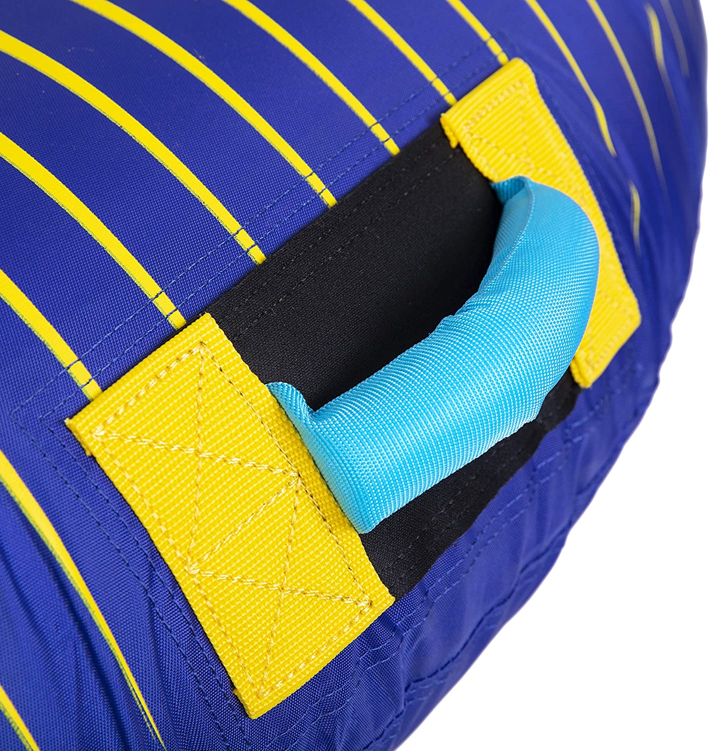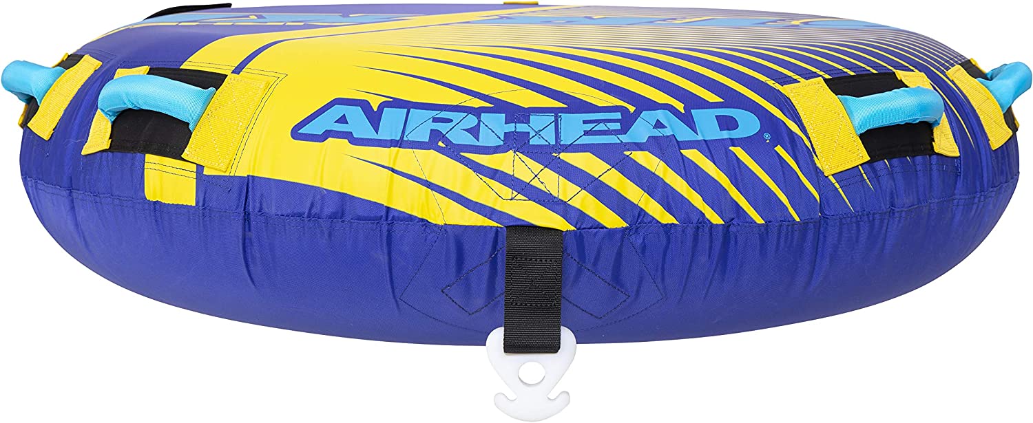 AIRHEAD STRIKE is an incredible value for a fully covered deck tube! It's a 1 rider 54 in. (deflated) round towable with 4 nylon wrapped handles and neoprene knuckle guards. The RF welded PVC bladder is fully encased by a durable double-stitched nylon cover. STRIKE is equipped with a Speed Safety valve for easy inflation and deflation, covered flap for safety.