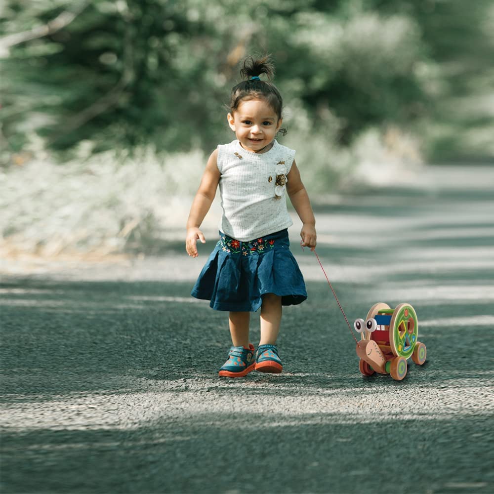 The Walk-A-Along Snail encourages movement and problem-solving. The wooden push toy encourages children to develop fine motor skills and play actively as they take their new snail friend on adventures around the house.