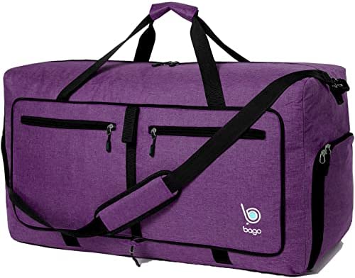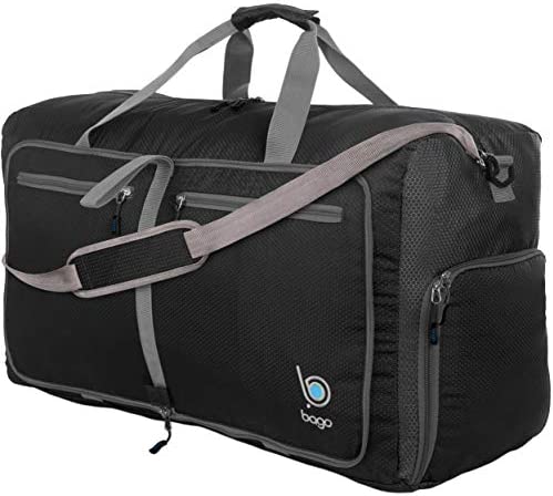 Bago Travel Duffel Bags for Traveling Women & Men- Foldable Weekender Bag - 80L 27" Large Duffle Bag For Travel & Camping Bag - Packable Lightweight Overnight Luggage bag (Black)