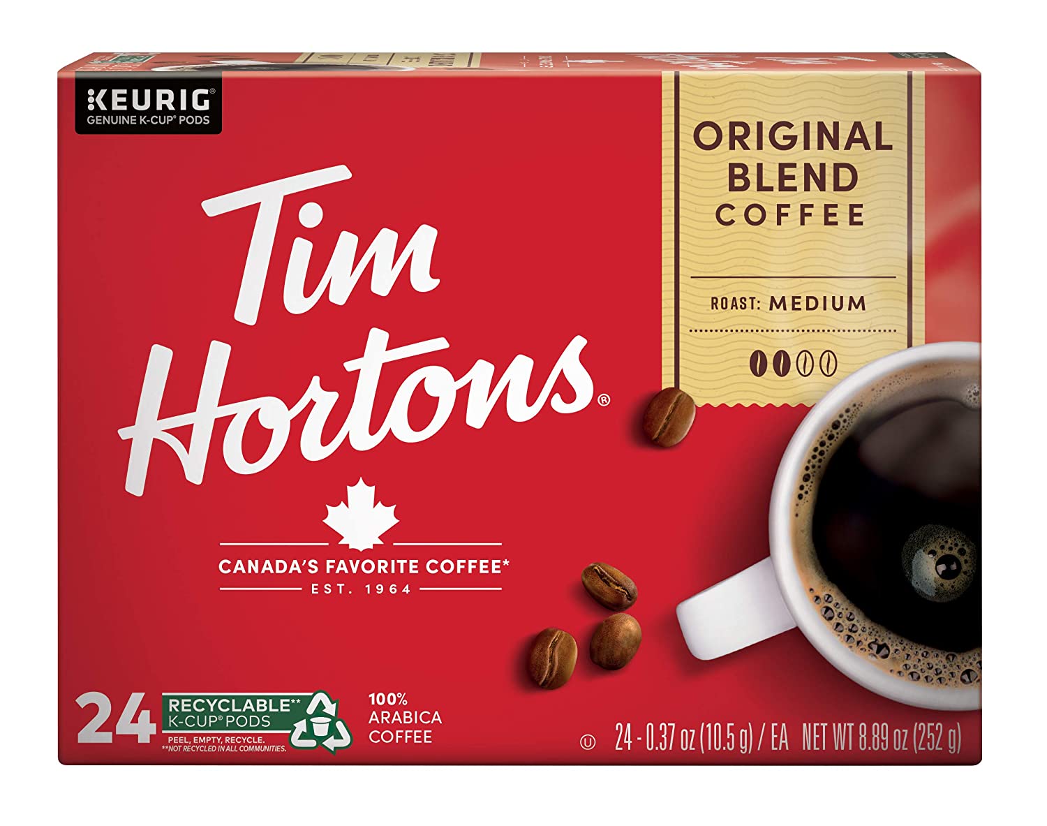 Tim Hortons Original Blend, Medium Roast Coffee, Single-Serve K-Cup Pods Compatible with Keurig Brewers, 24 Count(Pack of 1)