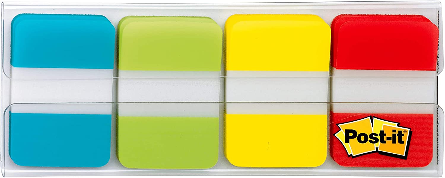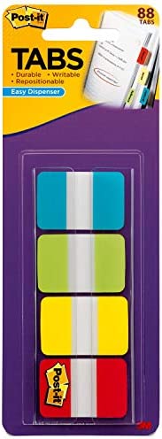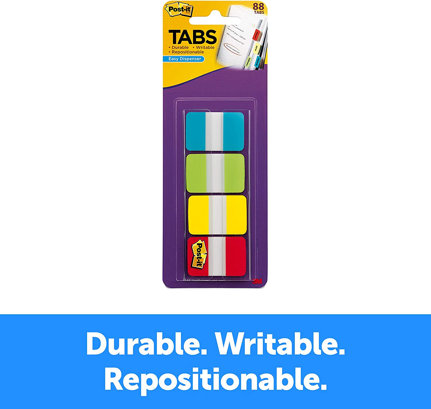 Post-it Tabs, 1 in Solid, Aqua, Lime, Yellow, Red, 22/Color, 88/Dispenser (686-ALYR1IN)