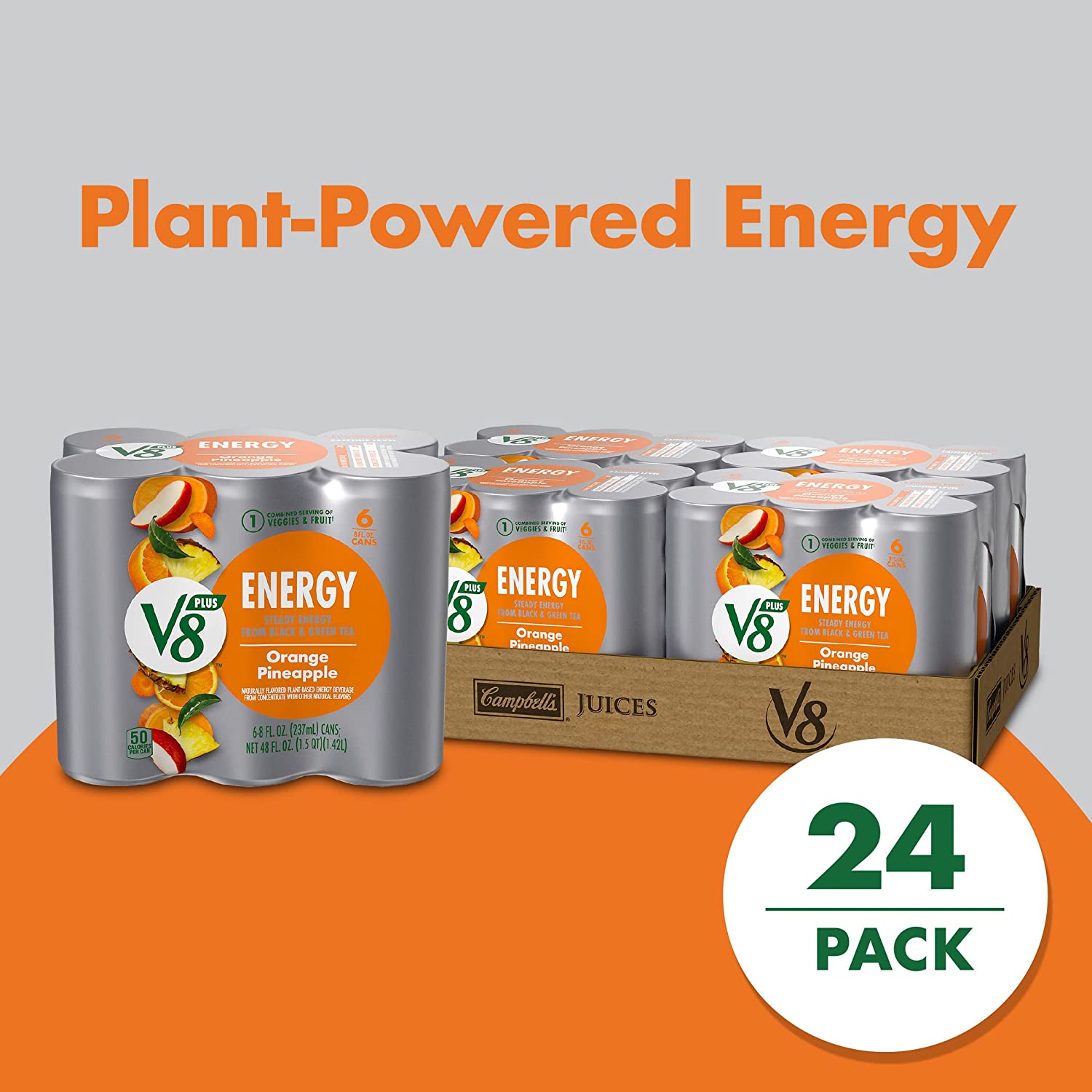• Fruit flavored energy drinks: twenty-four (24) 8 fl oz cans of V8 +ENERGY orange pineapple energy drink