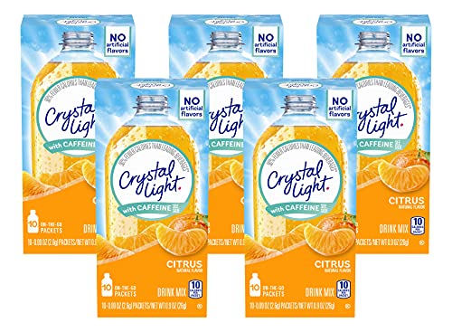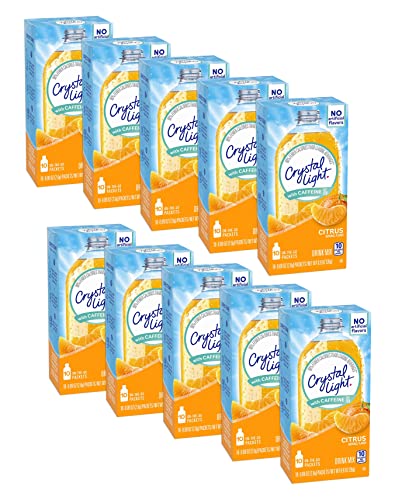 Ten 0.09 oz packets of Crystal Light Naturally Flavored Citrus On-The-Go Powdered Drink Mix with Caffeine