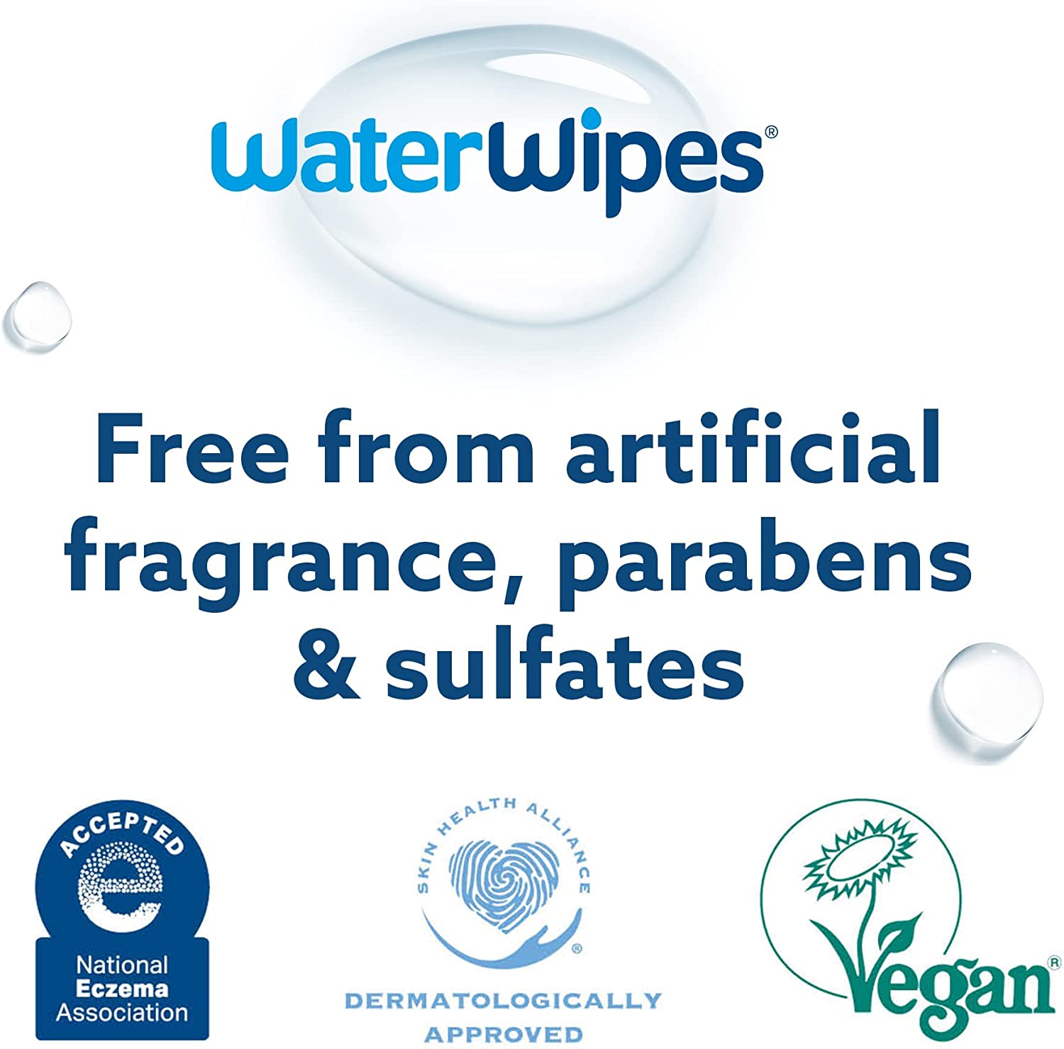 TRUSTED BY DERMATOLOGISTS: Suitable for eczema-prone skin and allergy sufferers, WaterWipes are accepted by the National Eczema Association of America, Dermatologically Approved by the Skin Health Alliance and registered by the Vegan Society.