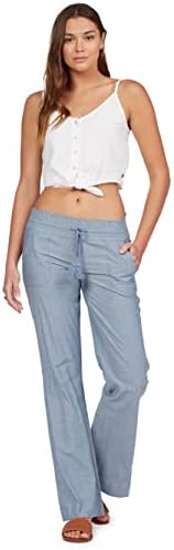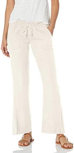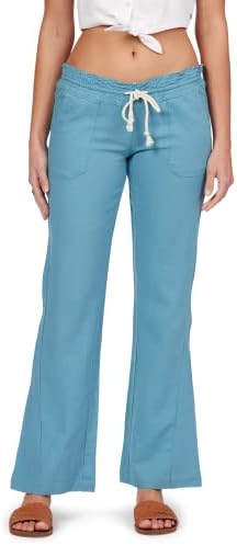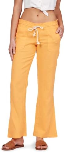 EASY FIT: Have some fun in the sun with the Roxy Oceanside pant featuring an easy, slightly looser fit with flared leg; Lightweight, linen blend fabric and elastic waistband with drawcord provide maximum comfort