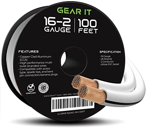 16AWG Speaker Wire, GearIT Pro Series 16 Gauge Speaker Wire Cable (100 Feet / 30.48 Meters) Great Use for Home Theater Speakers and Car Speakers, White
