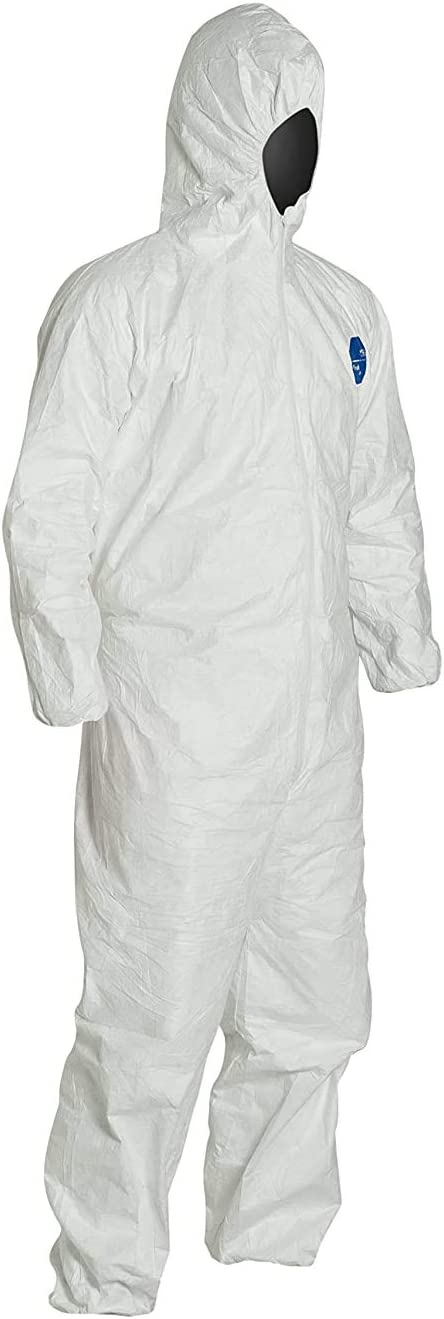Tyvek Disposable Suit by Dupont with Elastic Wrists, Ankles and Hood (3XL) White