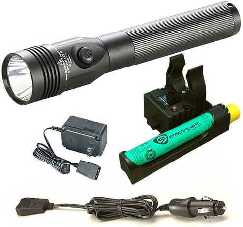 Streamlight 75429 Stinger LED HL Rechargeable High Lumen Flashlight without Charger. Streamlight's HL Series - now available in rechargeable systems. When you need maximum illumination with a wide beam to search a large area, the Stinger LED HL rechargeable, high lumen flashlight provides a blast of 640-lumen with 297-meter of beam distance. 3-Lighting modes and strobe: High for high-lumen and super-bright light; Medium for intense brightness and longer run time; Low for extended run times and when a less intense beam is ideal; Strobe for signaling or disorienting. LED technology, shock-proof with a 50,000 hour lifetime. Deep-dish parabolic reflector produces a concentrated beam with optimum peripheral illumination. Optimized electronics provide regulated intensity throughout battery charge. NiMH battery rechargeable up to 1000 times; also accepts NiCd battery. Made up of 6000 series machined aircraft aluminum with non-slip rubberized comfort grip and anti-roll rubber ring. Unbreakable polycarbonate lens with scratch-resistant coating. IPX4 water resistant and 1-meter impact resistance tested. Serialized for positive identification. Length: 8.41-inch (21.36 cm) and weight: 12.4-ounce (352 g). Comes with a limited lifetime warranty.