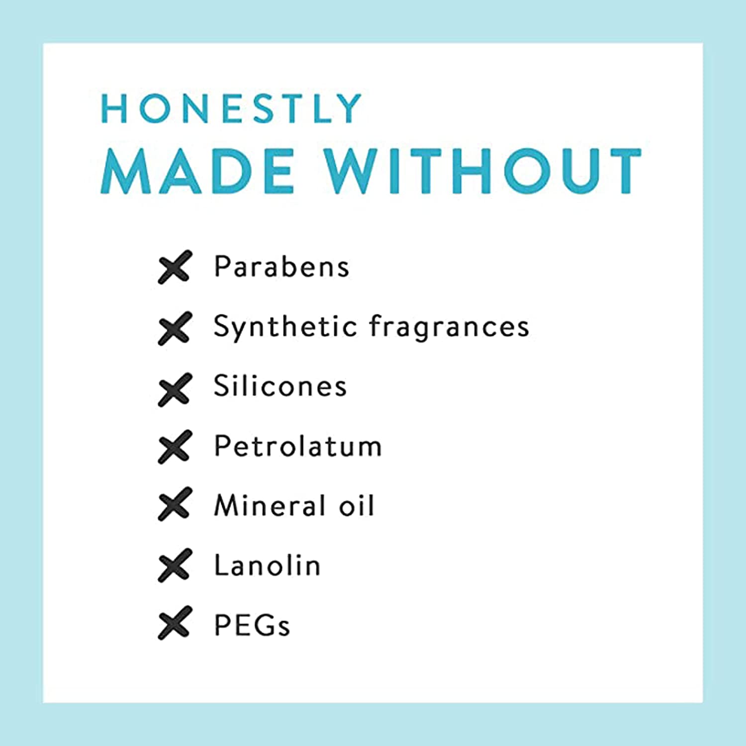 Physician tested.NSF certified.Made without PEGs, parabens, synthetic fragrances, silicones, petrolatum, mineral oil, lanolin.