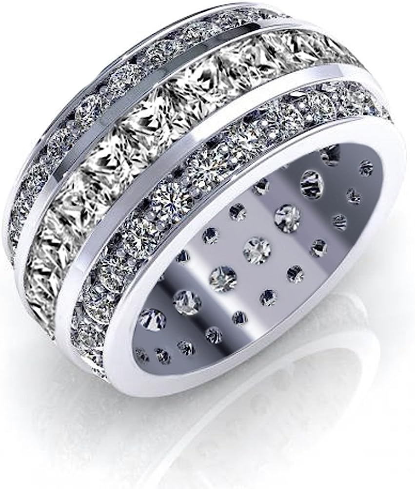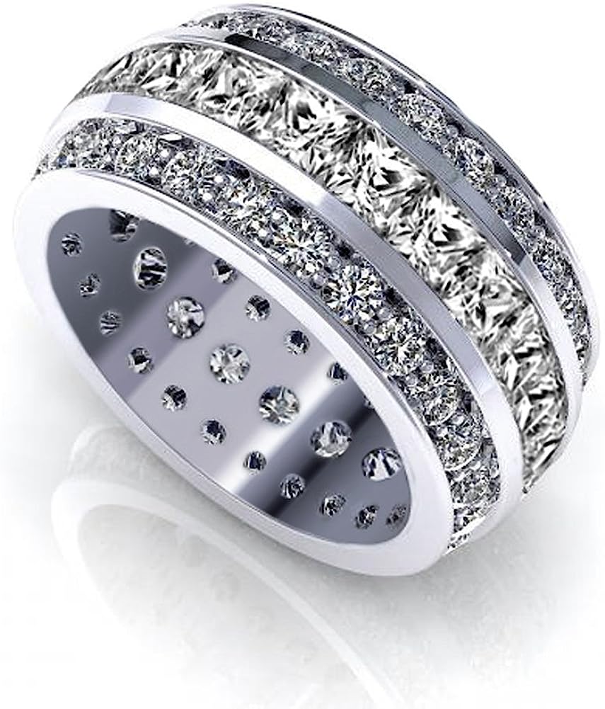 Madina Jewelry 5.00 ct Ladies Three Row Princess and Round Cut Diamond Eternity Wedding Band in Platinum