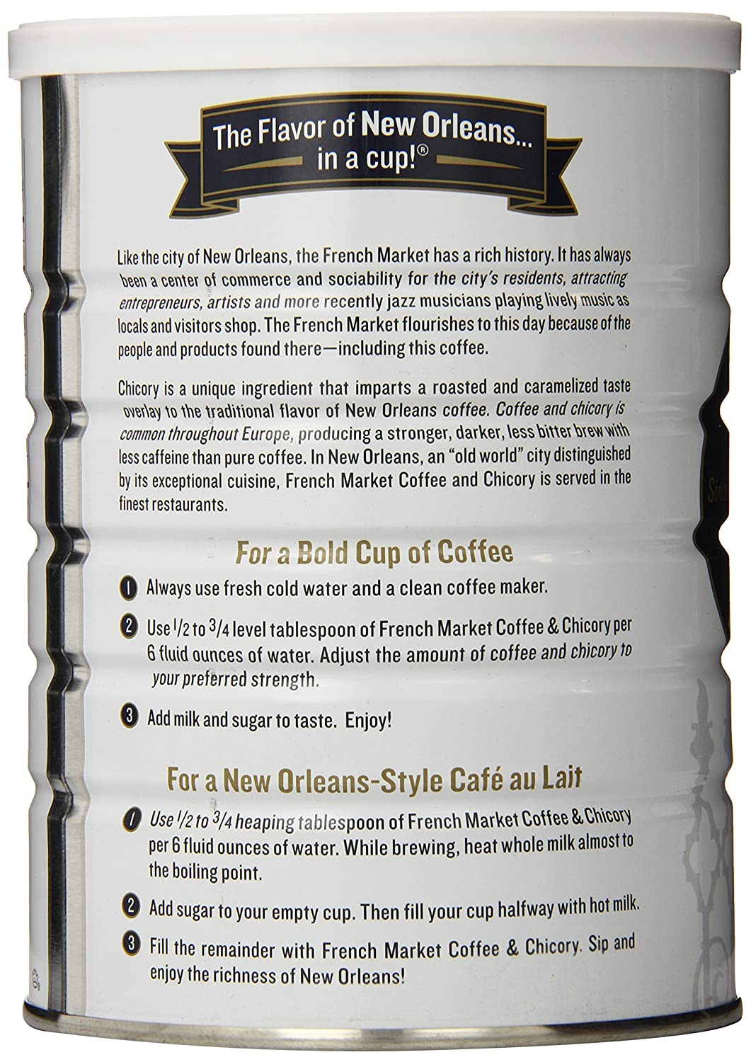 • Medium-Dark Roast Ground Coffee: Our bold medium-dark roast coffee blended with imported French chicory for a caramelized sweetness Enjoy this quintessential New Orleans coffee made with 100% Arabica coffee beans
