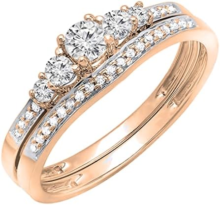Dazzlingrock Collection 4.2mm Centre Round White Diamond 5 Stone Engagement Ring Band Set for her (0.75 ctw, Color I-J, Clarity I1-I2) in 14K Gold