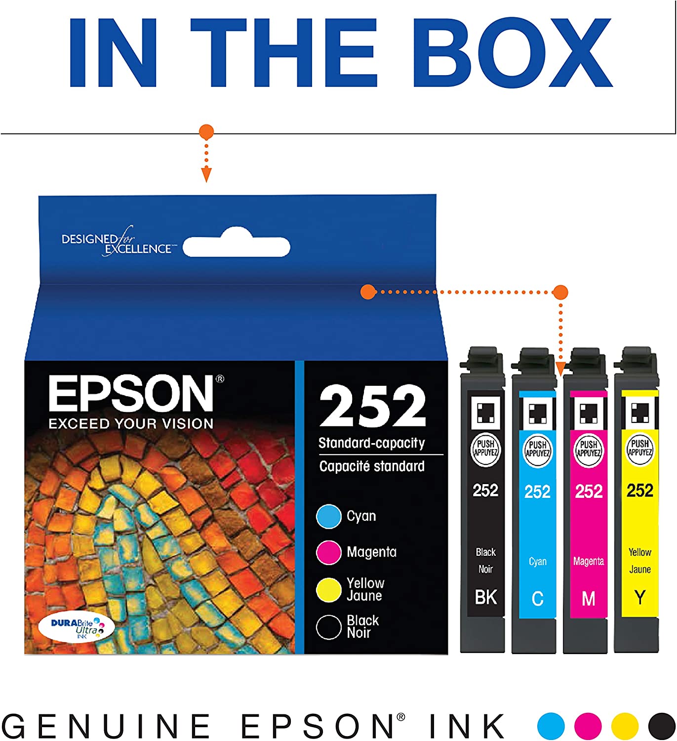 EPSON T252 DURABrite Ultra Ink Standard Capacity Black & Color Cartridge Combo Pack (T252120-BCS) for select Epson WorkForce Printers
