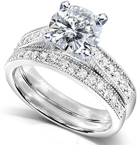 Kobelli Round Moissanite Pave-Set Bridal Set 1 4/5 CTW 14k White Gold