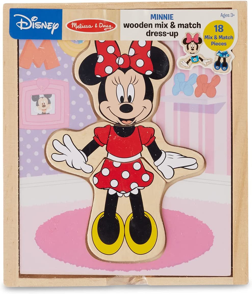 Melissa & Doug Disney Minnie Mouse Mix and Match Dress-Up Wooden Play Set (18 pcs) - Minnie Mouse Toys For Disney Fans, Minnie Mouse Fashion Puzzle Toy, Travel Toys For Kids Ages 3+