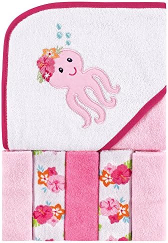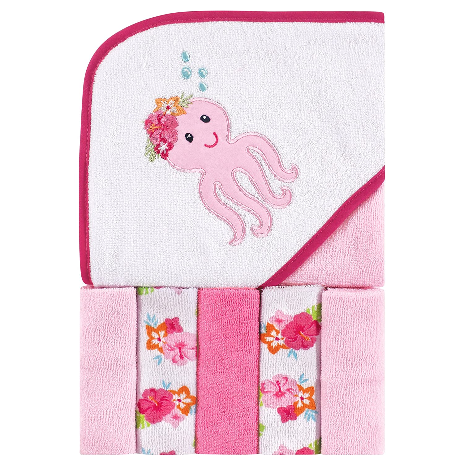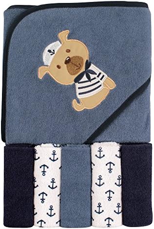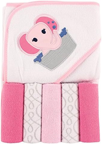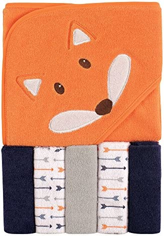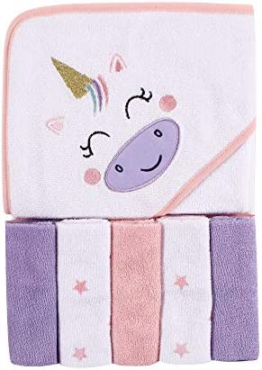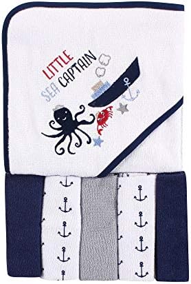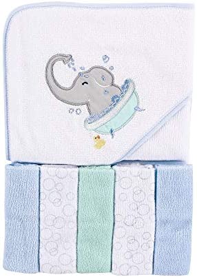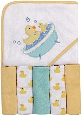 Luvable Friends Unisex Baby Hooded Towel with Five Washcloths, Duck, One Size