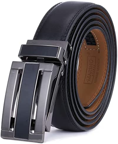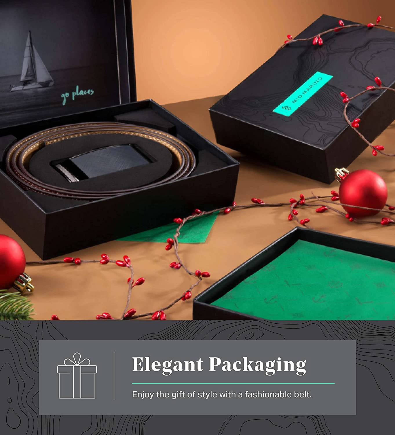 Marino Avenue Men’s Genuine Leather Ratchet Dress Belt with Linxx Buckle - Gift Box