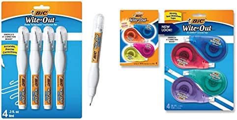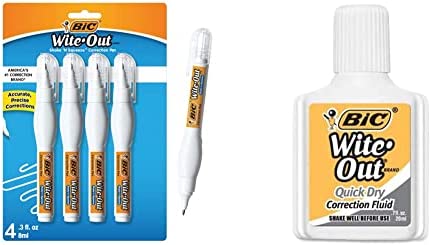 BIC Wite-Out Brand Shake 'n Squeeze Correction Pen, 8 ML Correction Fluid, 4-Count Pack of white Correction Pens, Fast, Clean and Easy to Use Office or School Supplies