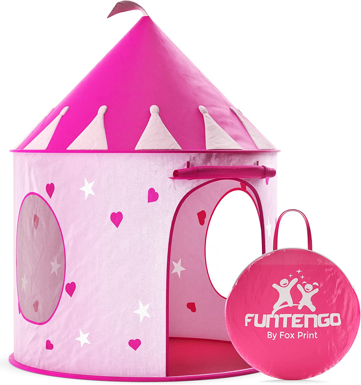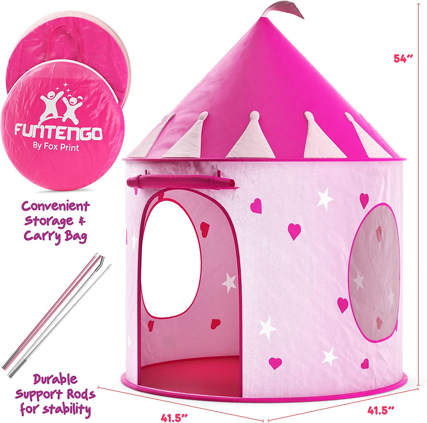 FoxPrint Princess Castle Play Tent with Glow In The Dark Stars, Conveniently Folds in To A Carrying Case, Your Kids Will Enjoy This Foldable Pop Up Pink Play Tent/House Toy for Indoor & Outdoor Use
