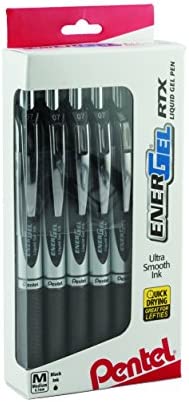 Pentel EnerGel RTX RT Liquid Gel Pen, Med, Metal Tip, 0.7mm, Black Ink, 12-Pk Window Box of 12 (BL77PC12A1)