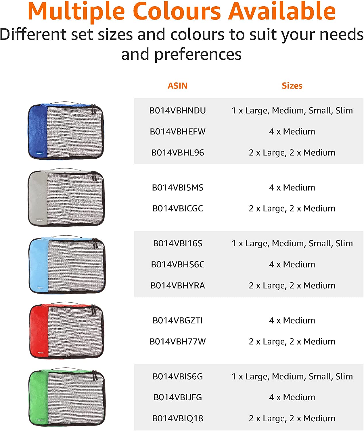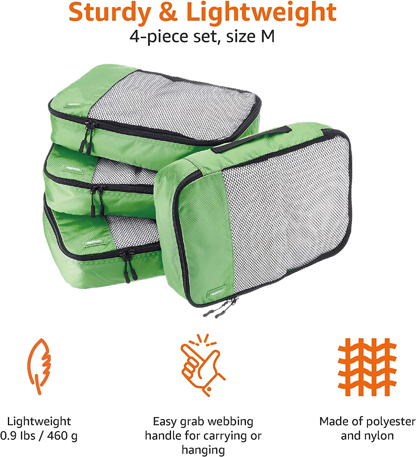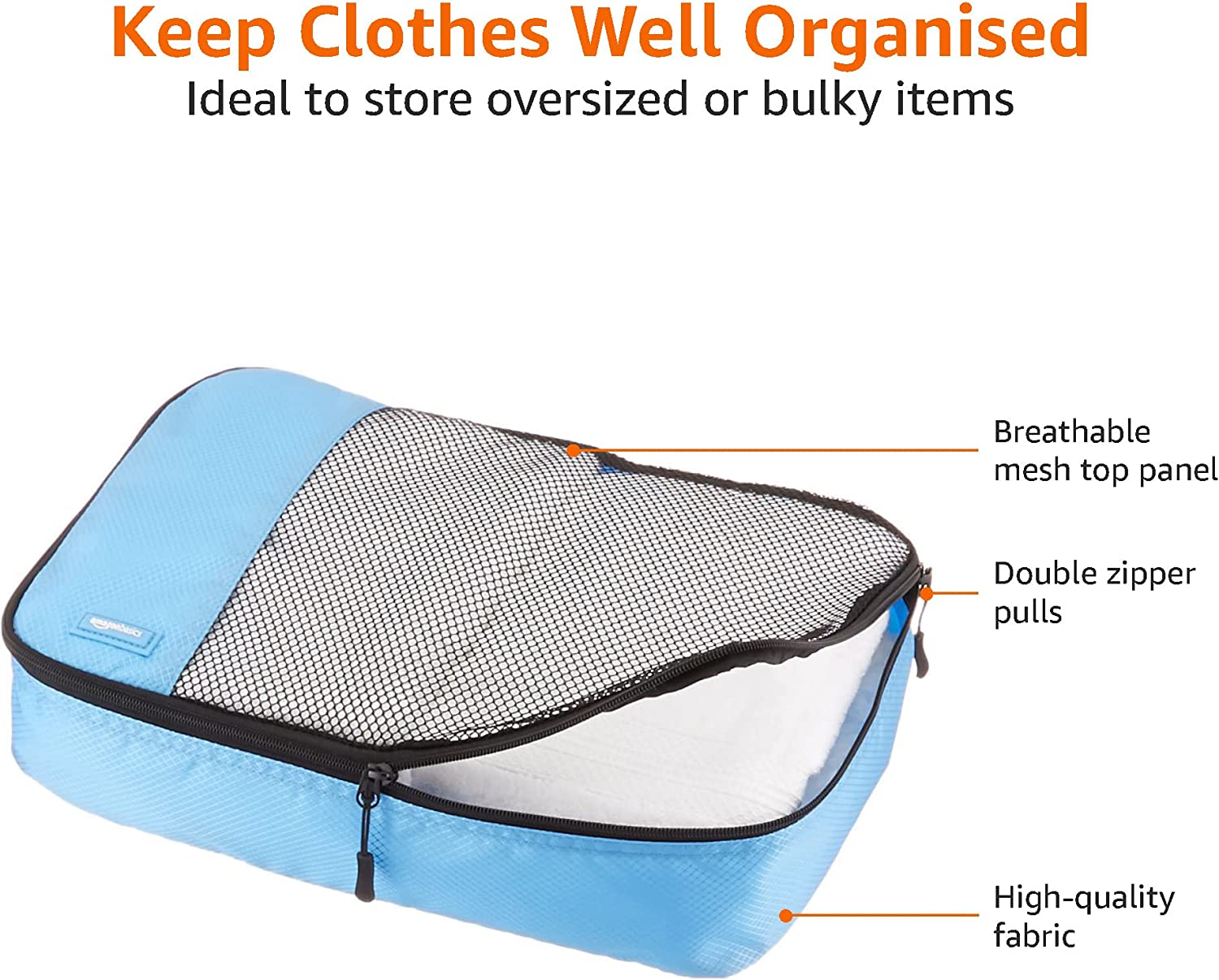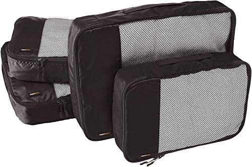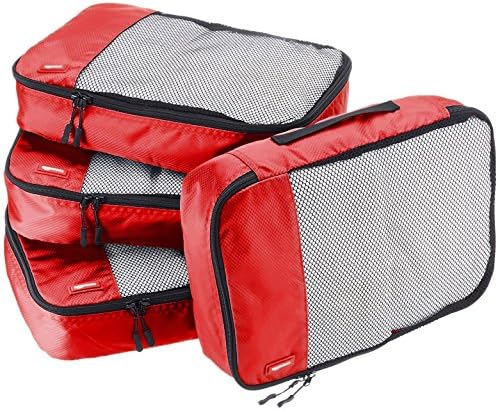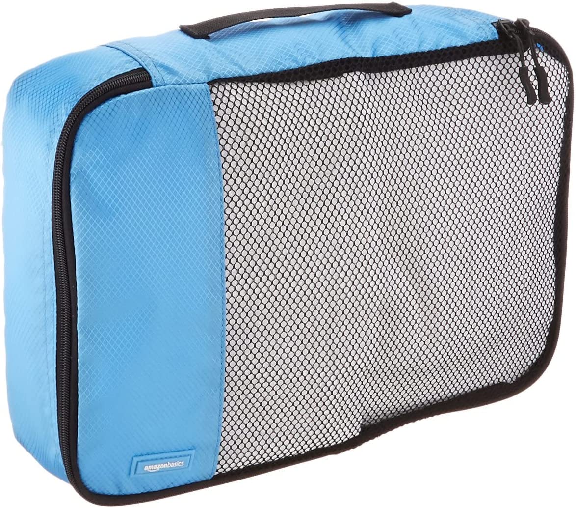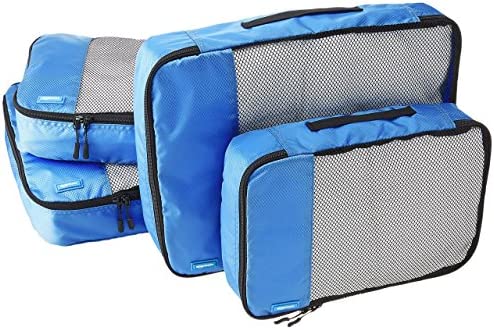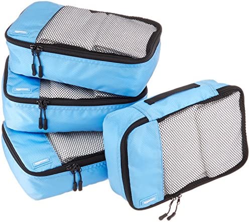 Amazon Basics 4 Piece Packing Travel Organizer Cubes Set - Medium, Sky Blue