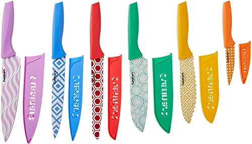 Cuisinart C55-12PCKSAM 12-Piece Ceramic Coated Stainless Steel Knives, Comes with 6-Blades and 6-Blade Guards, Color Coded to Reduce Risk of Cross Contamination, Jewel